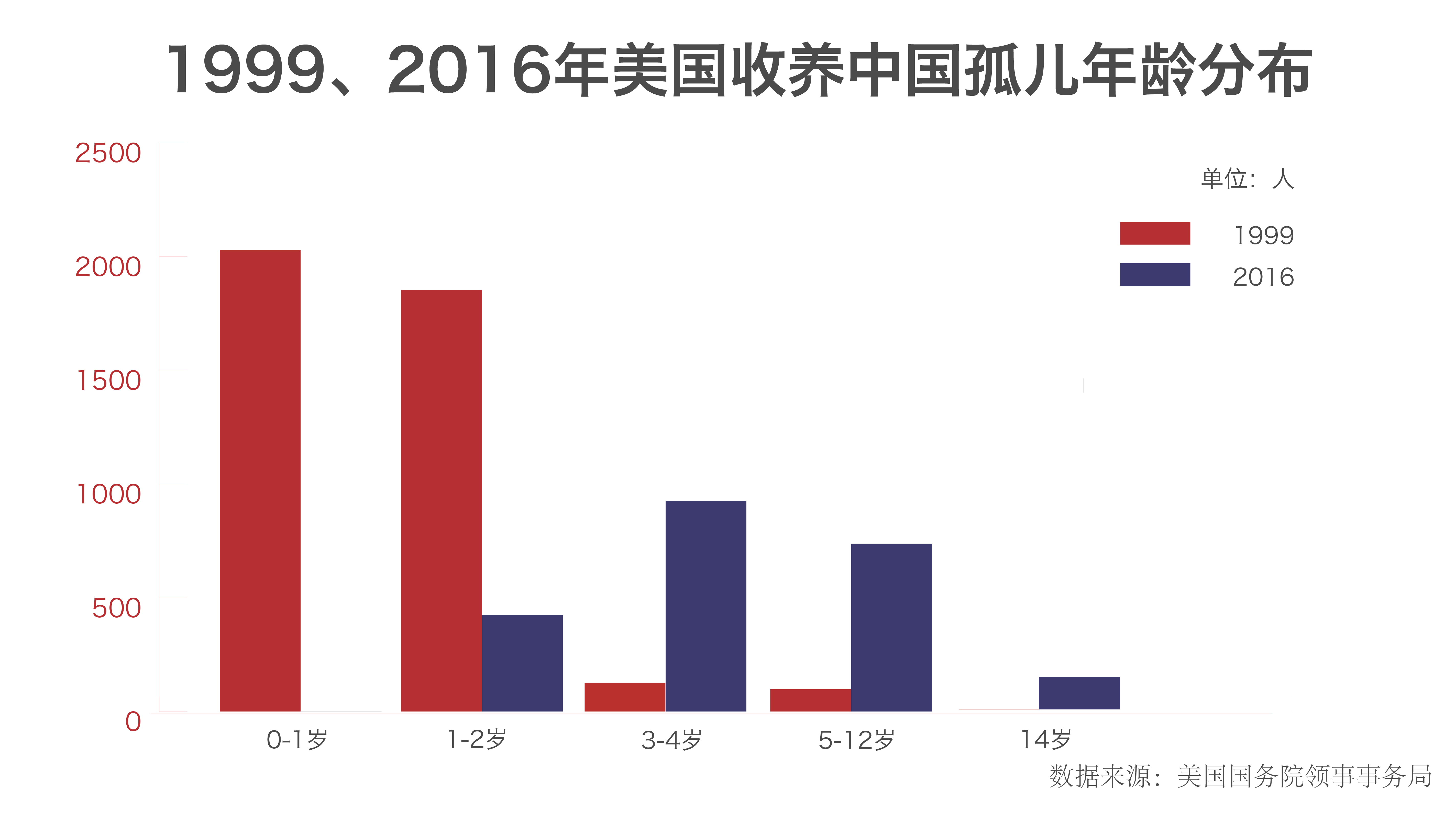 虽然当下中国仍旧是美国最大的送养国,但是收养数量较最高点2005年相比下降了71.8%。